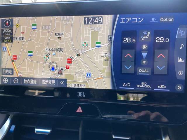 インテリアに付きましては、エアバッグ(運転席/助手席/サイド/カーテン)・メモリーナビ・ディスプレイオーディオ・クルーズコントロール・ドライブレコーダー・スマートキー・ETC・盗難防止装置など装備で、ディスプレイは、ナビ・バックカメラ・フルセグTV・フルオートエアコン対応となります。